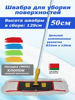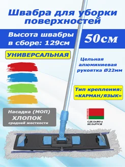 Швабра 50 см хлопок универсальная с цельной ручкой