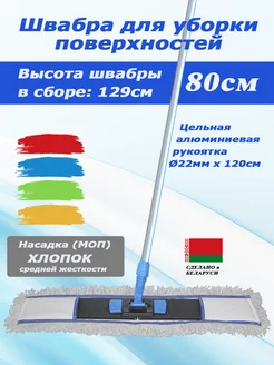 Швабра 80 см хлопок с цельной ручкой