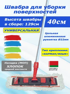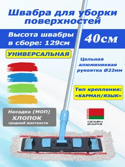 Швабра 40 см хлопок универсальная с цельной ручкой