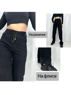 Джинсы на резинке утепленные демисезон с высокой талией