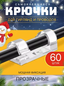Суперкрючки для гирлянд самоклеящиеся прозрачные 60 шт