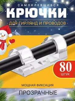 Суперкрючки для гирлянд самоклеящиеся прозрачные 80 шт