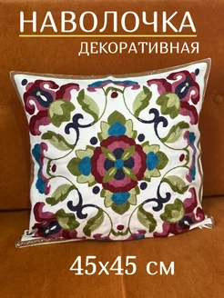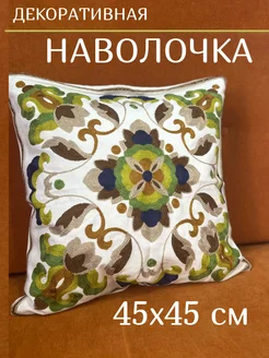 Наволочка декоративная с вышивкой 45х45 чехол на подушку