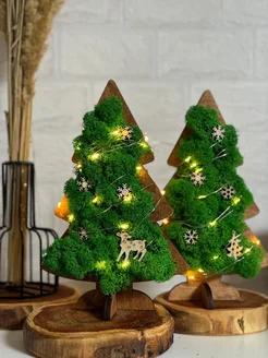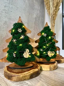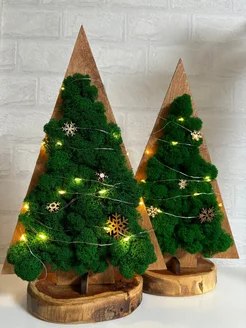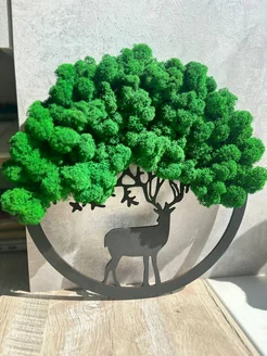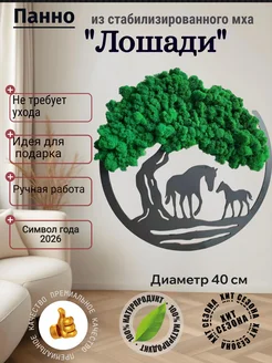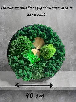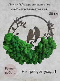 Панно декоративное на стену из мха "Птицы на ветке" 30 см