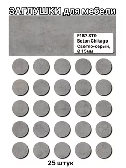 Заглушка для мебели, Бетон Чикаго светло-серый,D15мм