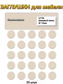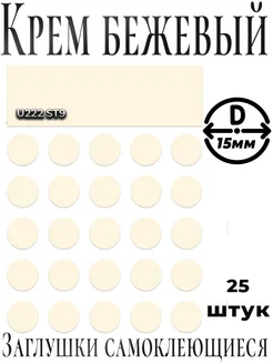 Заглушки для мебели, Крем бежевый, D15мм, самоклеящиеся