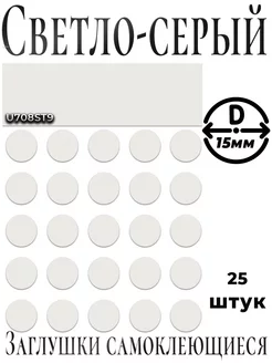 Заглушки для мебели, Светло-серый, D15мм, самоклеящиеся