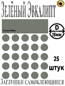 Заглушки мебельные, ABS, Зелёный Эвкалипт, D15мм