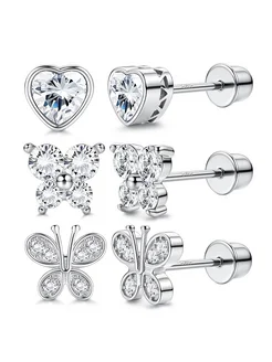 серьги-гвоздики с фианитами 3 вида набор