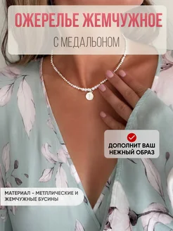 Колье с жемчугом серебристое с подвеской чокер бусы