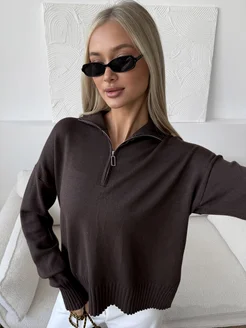 Поло джемпер оверсайз на молнии с длинным рукавом