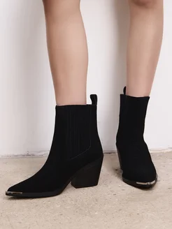 Сапоги казаки натуральная замша демисезонные на каблуке