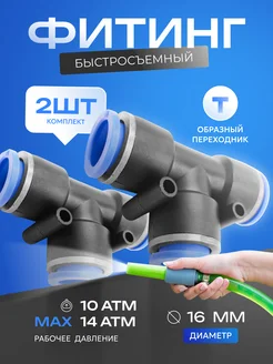 Фитинг тройник Т-образный быстросъемный пневматический 16 мм