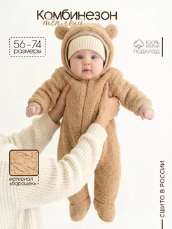 Теплый комбинезон для новорожденных плюшевый слип на выписку