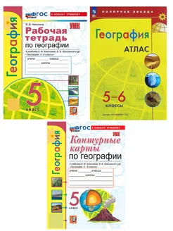Комплект Рабочая тетр. Атлас Контурные География 5 класс