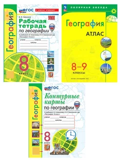Комплект Рабочая тетр. Атлас Контурные География 8 класс