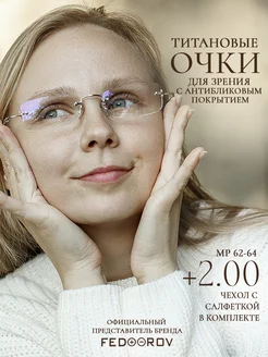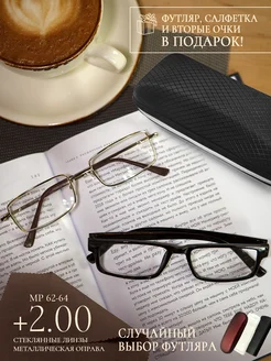 Очки для зрения +2.00 корригирующие стеклянные линзы