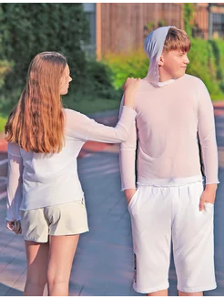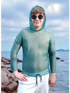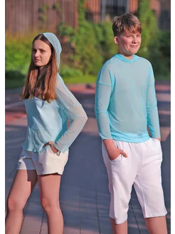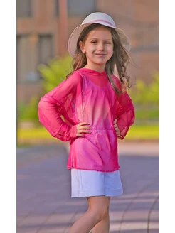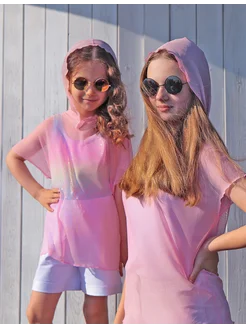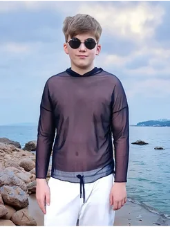 Туника солнцезащитная пляжная сетка для детей с капюшоном