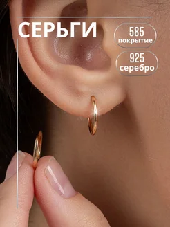 Серьги-кольца серебряные 925 пробы, позолоченные 2 шт