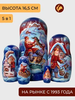Матрешка "Емеля" новогодняя деревянная 5 в 1