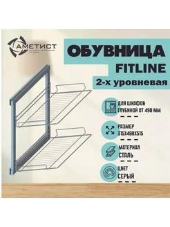 Обувница 2-х уровневая 1601, шариковые направляющие, серая