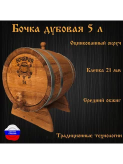 Дубовая бочка 5 литров с краном, средний обжиг