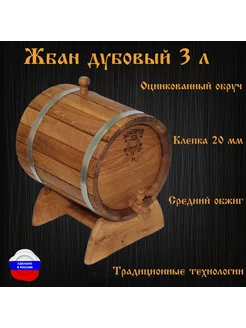 Бочка дубовая конусная (жбан) 3л с краном