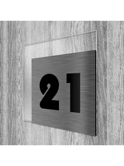 Табличка на дверь квартиры, самоклеящаяся №21 серебро