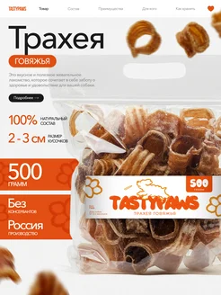 Сушеное Лакомство для собак вкусняшки Трахея Говяжья 500г