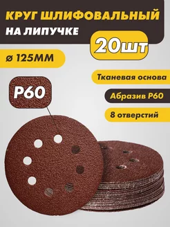 Шлифовальные круги на липучке с дырками 125 мм,Р60 - 20 штук