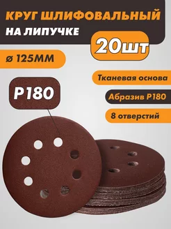 Шлифовальный диск на липучке 8 отверстий 125 мм, Р180 20 шт