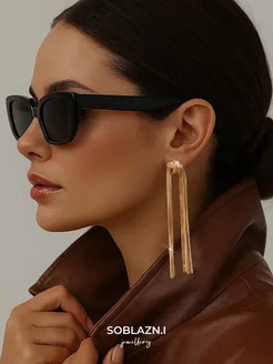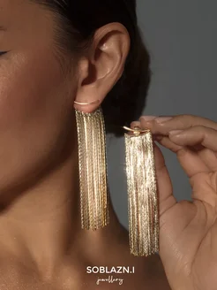 Серьги бижутерия длинные висячие под золото вечерние