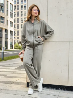 Спортивный костюм на молнии оверсайз с брюками палаццо