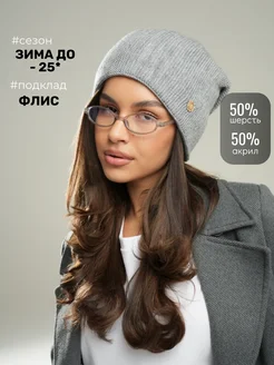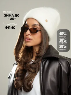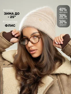 Шапка зимняя вязаная бини из ангоры на флисе