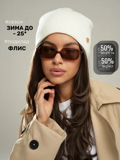 Шапка вязаная теплая зимняя бини на флисе