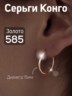 Серьги конго золотые 585 пробы ювелирные 15 мм