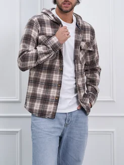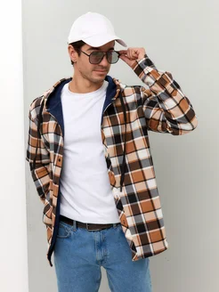 Рубашка куртка в клетку теплая флисовая с капюшоном