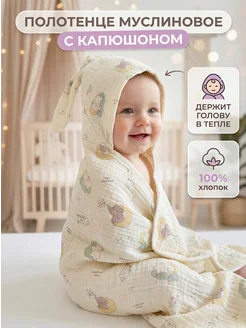 Полотенце для новорожденного с капюшоном уголок муслиновое