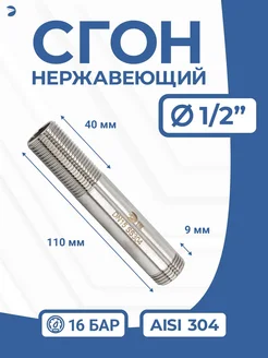 Сгон нержа, 1 2" дюйма двойной ниппель трубный