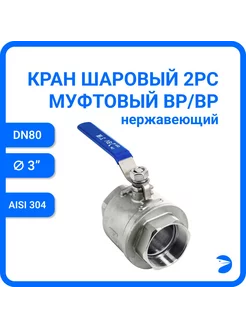 Кран шаровый (2PC), AISI304 DN80 (3")