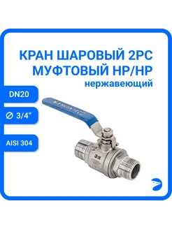 Кран шаровый муфтовый 2pc НР НР нержавеющий DN20 (3 4")