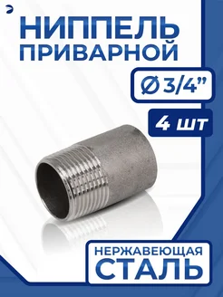 Ниппель приварной ДУ 20 (3 4"), нержавейка AISI 304, 4 шт