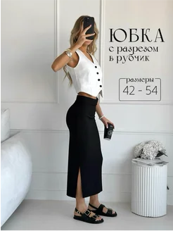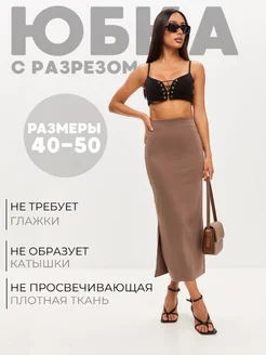 Юбка миди в рубчик с разрезом летняя