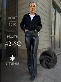 Брюки кожаные клеш на тонком флисе