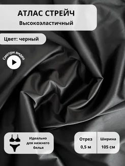 Атлас стрейч сатин - ткань для шитья 100*105 см, черный