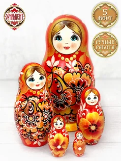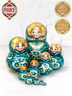 Русская матрешка деревянная с ромашками 10 мест, 10 см
