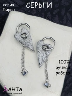 Серьги конго сердце с подвесками, Лирен, ручной работы