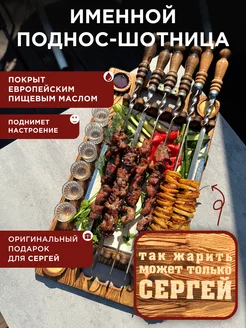 Деревянный поднос для шашлыка именной Сергей