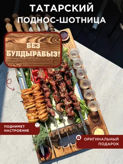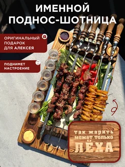 Деревянный поднос для шашлыка с шотницей для Лёхи