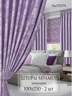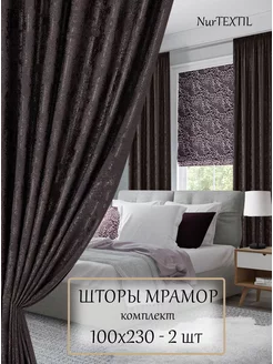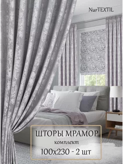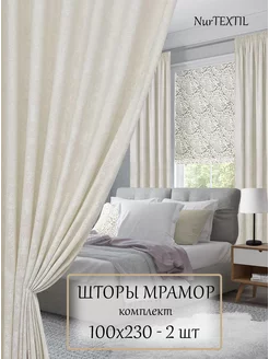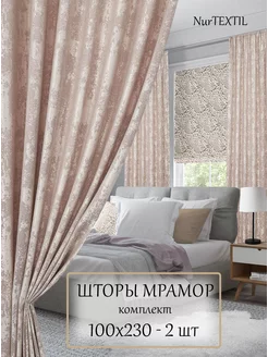 Шторы 100х230 см 2 шт мрамор димаут на ленте в спальню